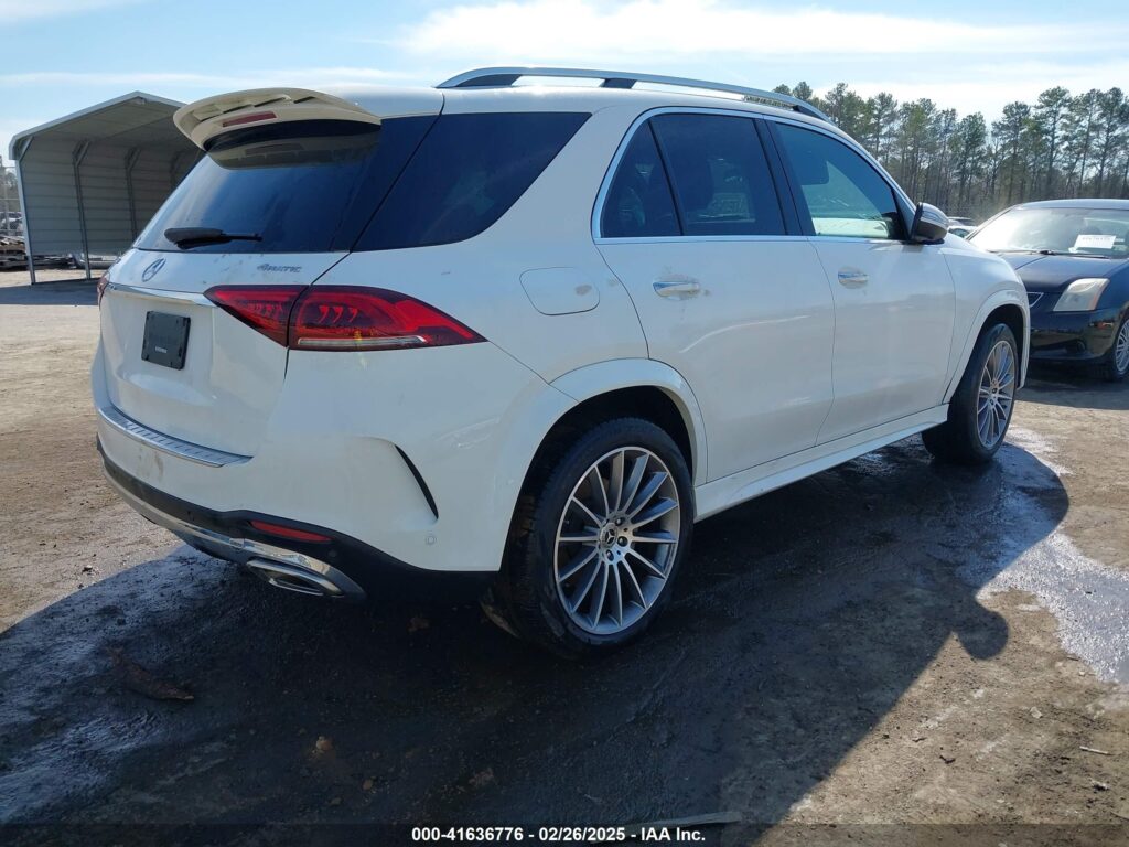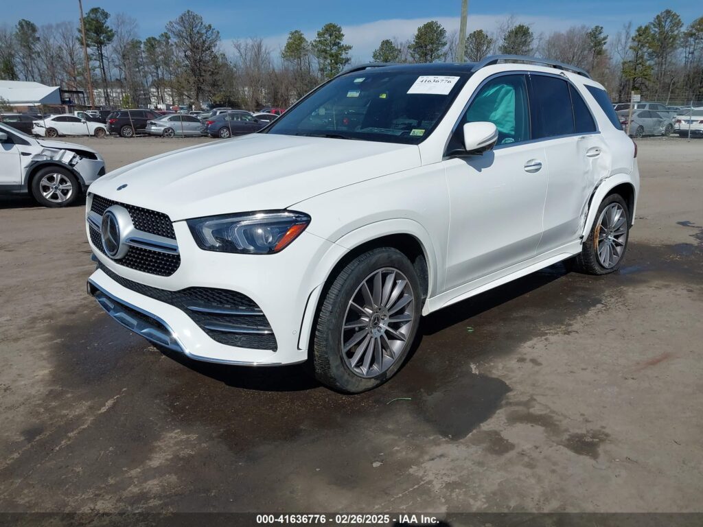 This 2021 Mercedes-Benz GLE-Class (White) is equipped with an engine designed to balance performance and efficiency. According to the auction listing, the vehicle had 25,907 miles at the time of sale.