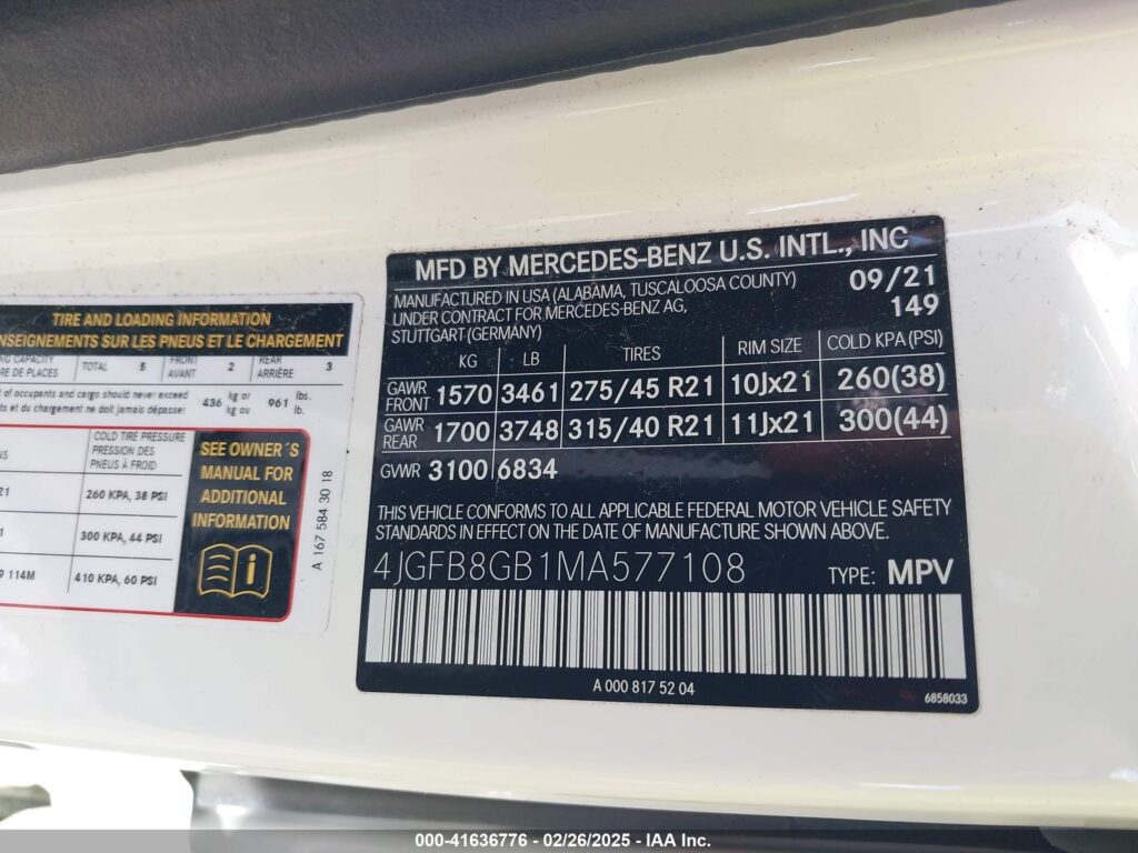 | VIN Number | 4JGFB8GB1MA577108 |