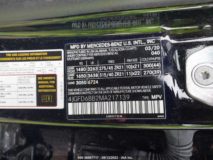 2021 Mercedes-Benz GLE-Class – 4JGFD6BB2MA217139