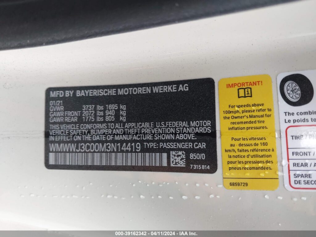 | VIN Number | WMWWJ3C00M3N14419 |