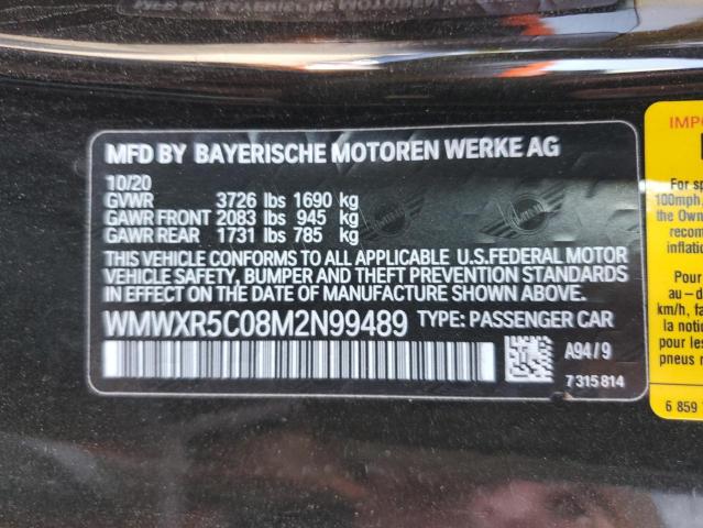 This 2021 Mini Cooper (Black) comes from a major insurance auction in the USA or Canada. All information on this page is linked to the vehicle’s VIN (WMWXR5C08M2N99489), which helps confirm where the car was listed and what condition it was in at the time of sale.