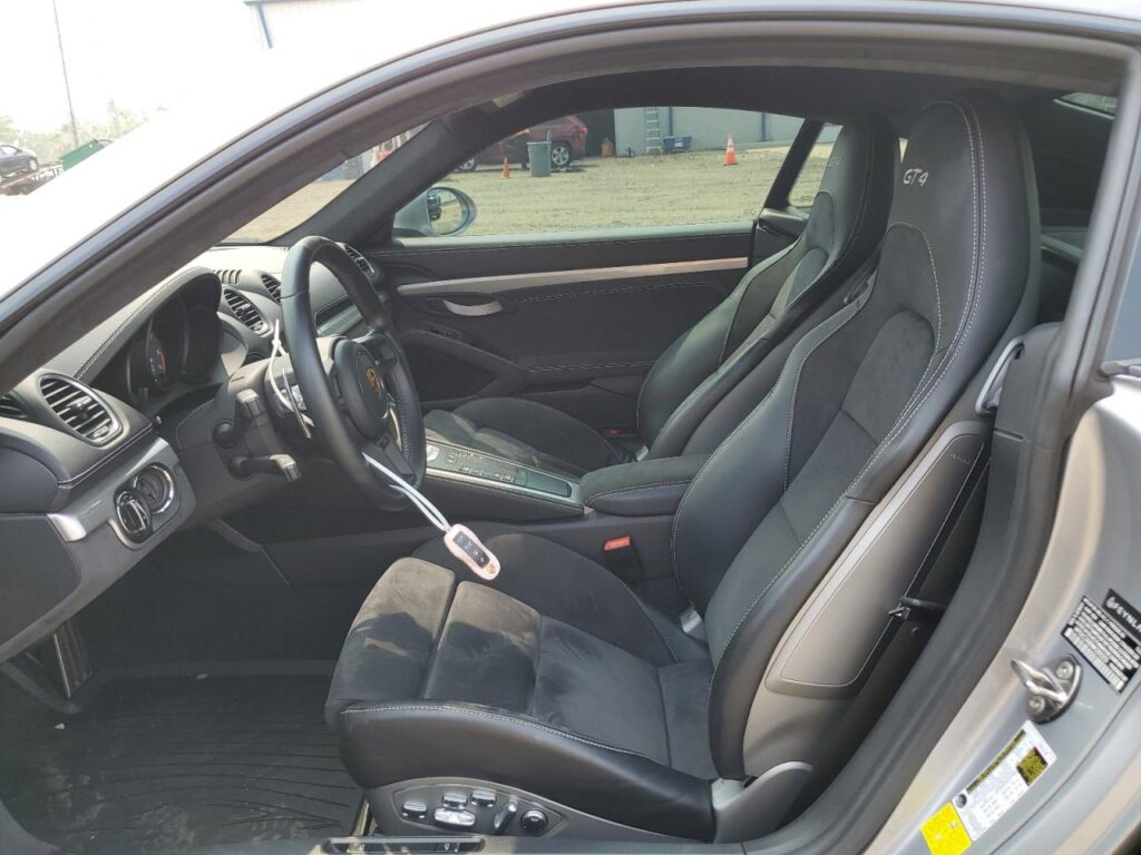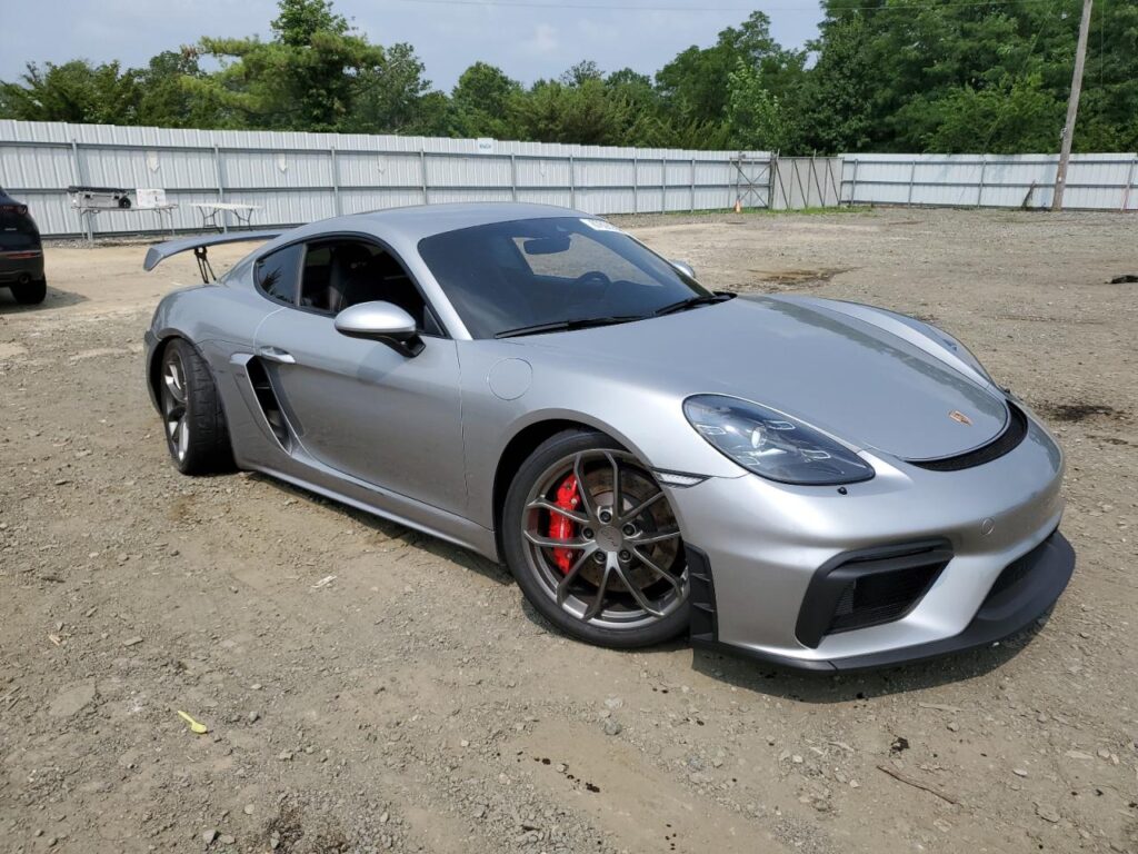 This 2021 Porsche Cayman (Silver) is equipped with an engine designed to balance performance and efficiency. According to the auction listing, the vehicle had 9,682 miles at the time of sale.