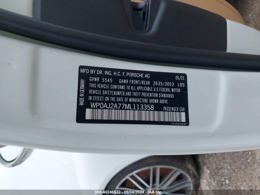 This 2021 Porsche Panamera (White) comes from a major insurance auction in the USA or Canada. All information on this page is linked to the vehicle’s VIN (WP0AJ2A77ML113358), which helps confirm where the car was listed and what condition it was in at the time of sale.