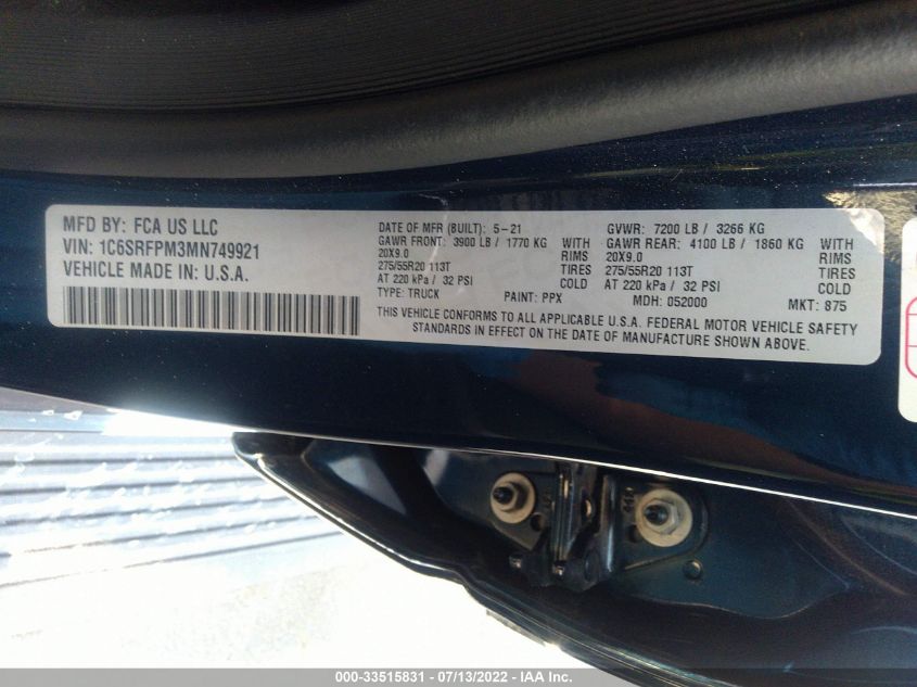 2021 Ram 1500 – 1C6SRFPM3MN749921