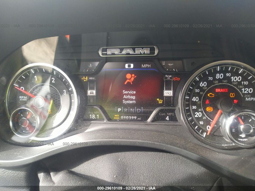 This 2021 Ram 1500 (Blue) is equipped with an engine designed to balance performance and efficiency. According to the auction listing, the vehicle had 10,399 miles at the time of sale.