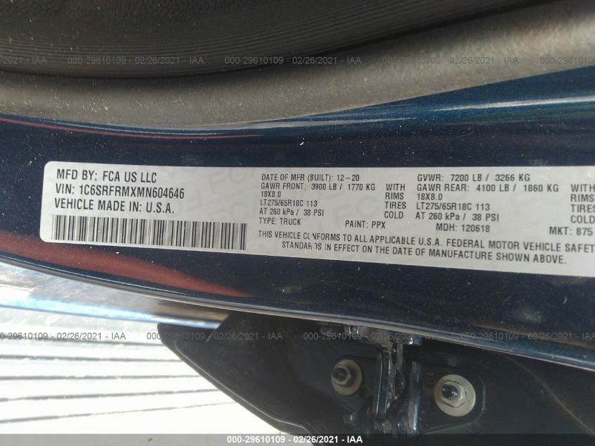 2021 Ram 1500 – 1C6SRFRMXMN604646