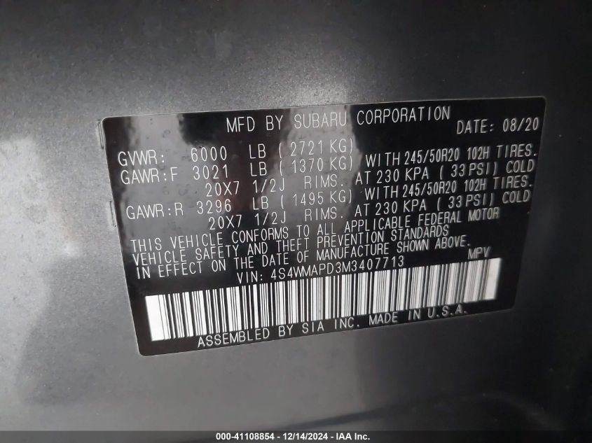 2021 SUBARU ASCENT – 4S4WMAPD3M3407713