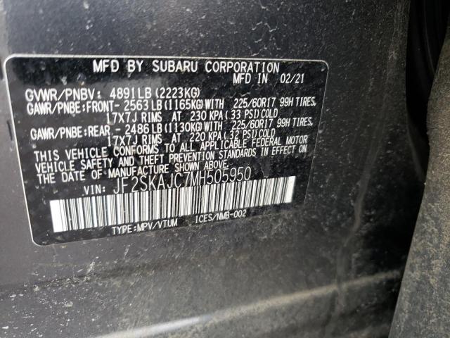 This 2021 Subaru Forester (Charcoal) comes from a major insurance auction in the USA or Canada. All information on this page is linked to the vehicle’s VIN (JF2SKAJC7MH505950), which helps confirm where the car was listed and what condition it was in at the time of sale.
