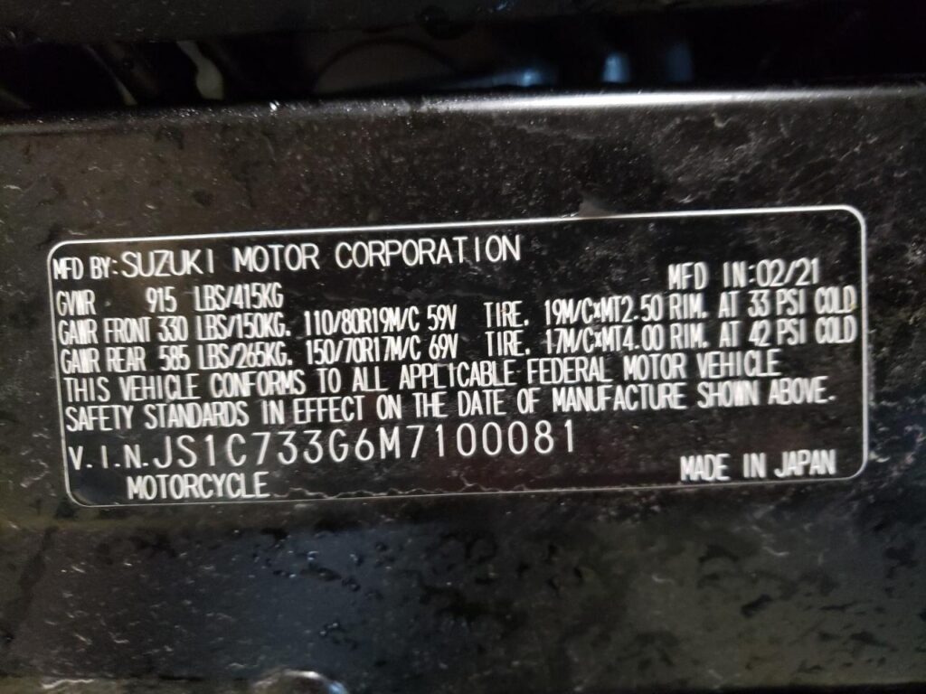 2021 Suzuki CYCLE DL – JS1C733G6M7100081