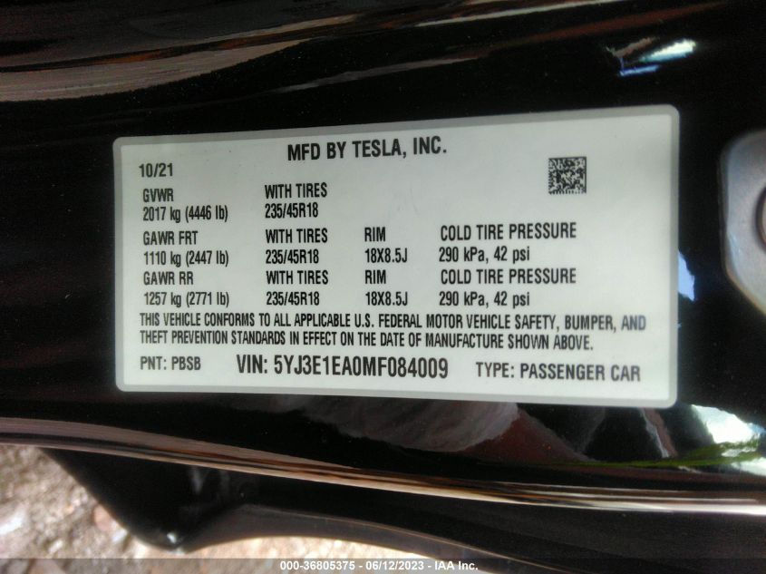 2021 Tesla Model 3 – 5YJ3E1EA0MF084009