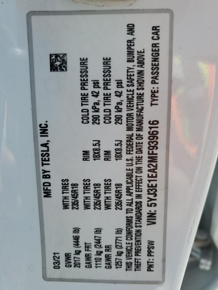 | VIN Number | 5YJ3E1EA2MF939616 |