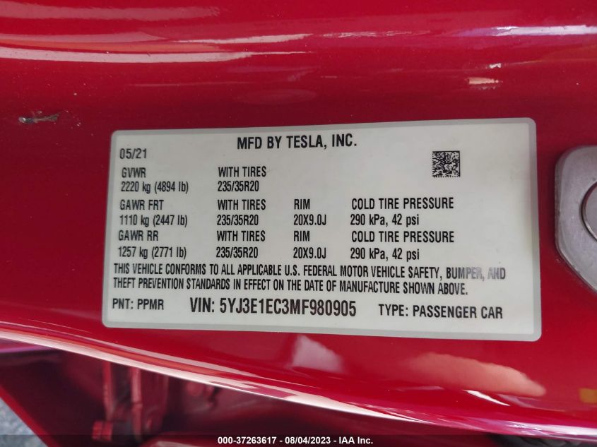 2021 Tesla Model 3 – 5YJ3E1EC3MF980905