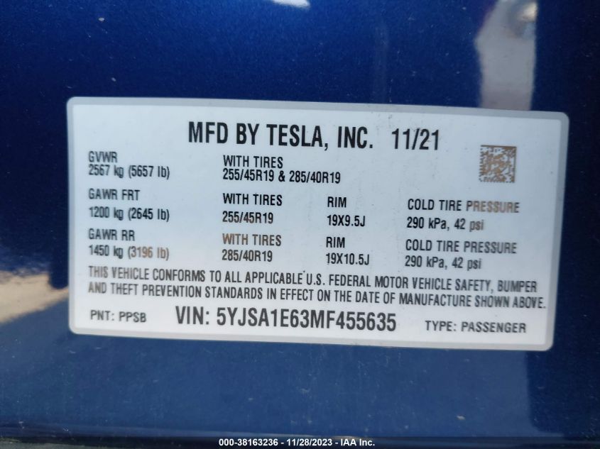 2021 TESLA MODEL S – 5YJSA1E63MF455635