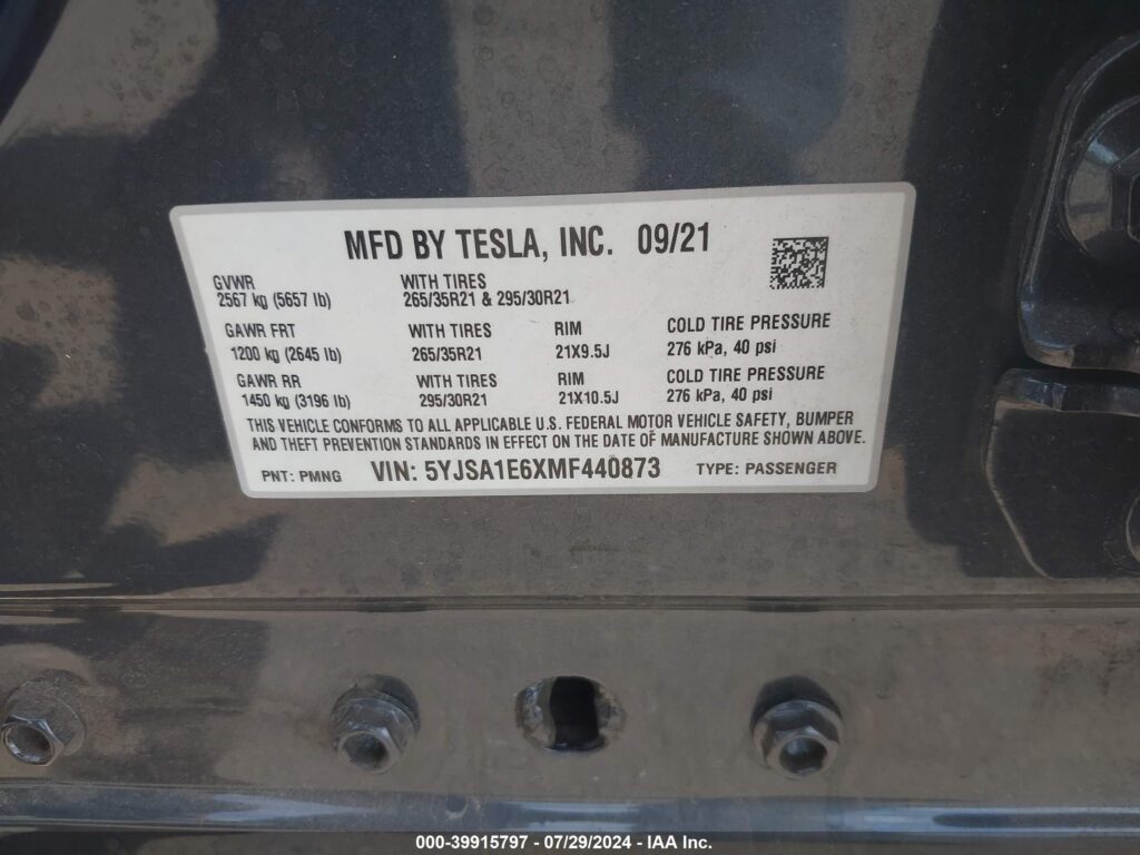 2021 Tesla Model S – 5YJSA1E6XMF440873