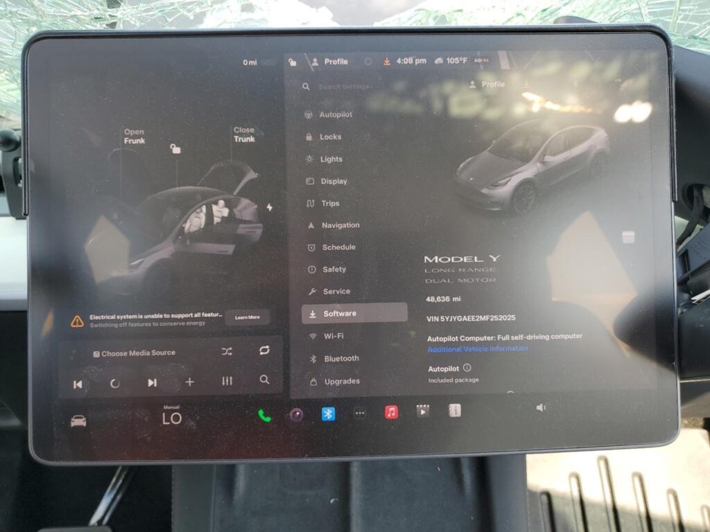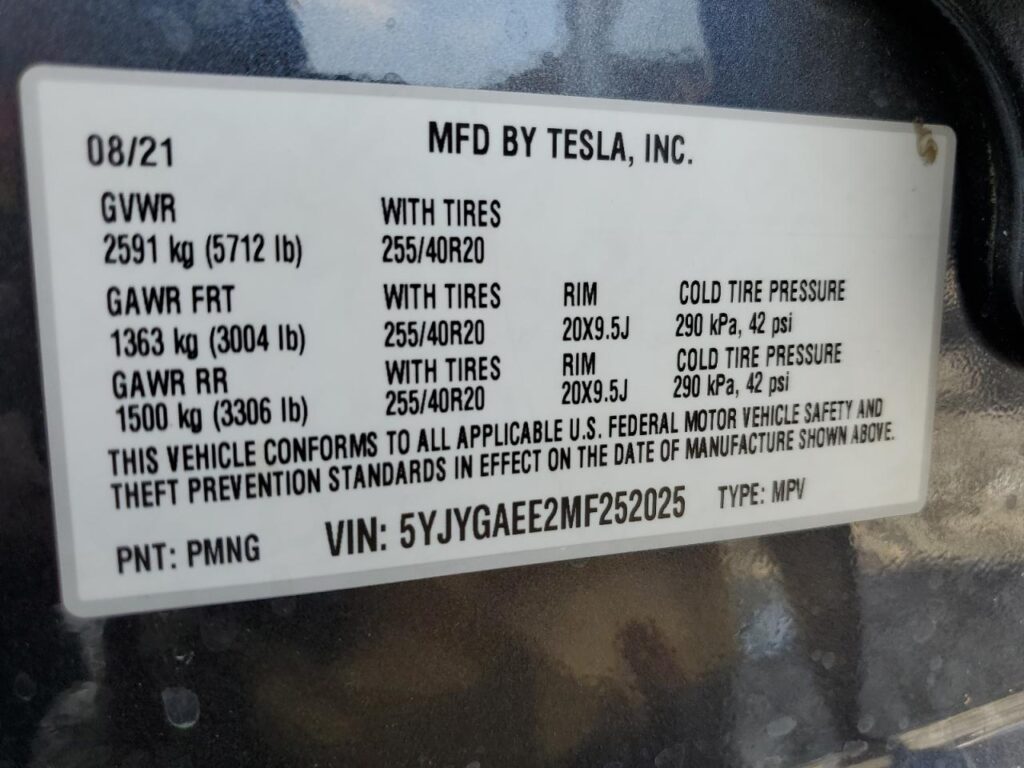This 2021 TESLA MODEL Y (CHARCOAL) comes from a major insurance auction in the USA or Canada. All information on this page is linked to the vehicle’s VIN (5YJYGAEE2MF252025), which helps confirm where the car was listed and what condition it was in at the time of sale.