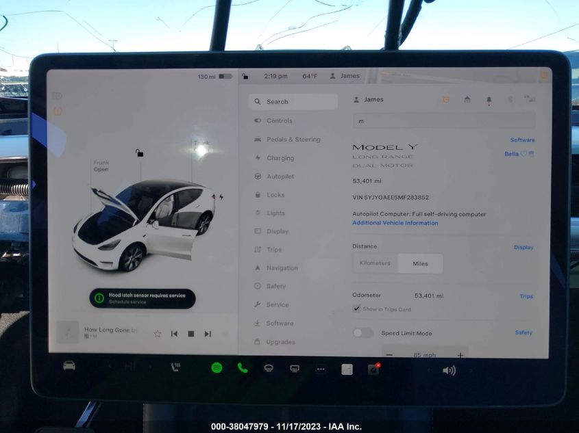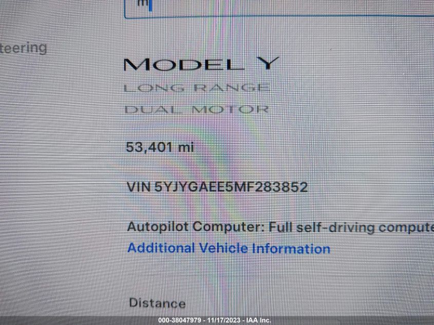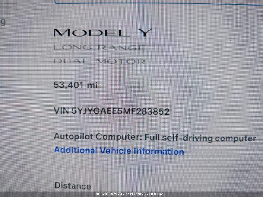 This 2021 Tesla Model Y (White) is equipped with an engine designed to balance performance and efficiency. According to the auction listing, the vehicle had 53,401 miles at the time of sale.