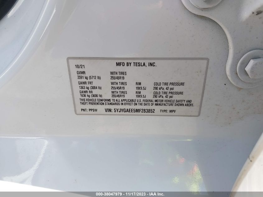 | VIN Number | 5YJYGAEE5MF283852 |