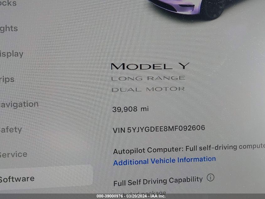 This 2021 TESLA MODEL Y (White) is equipped with an engine designed to balance performance and efficiency. According to the auction listing, the vehicle had 39,908 miles at the time of sale.