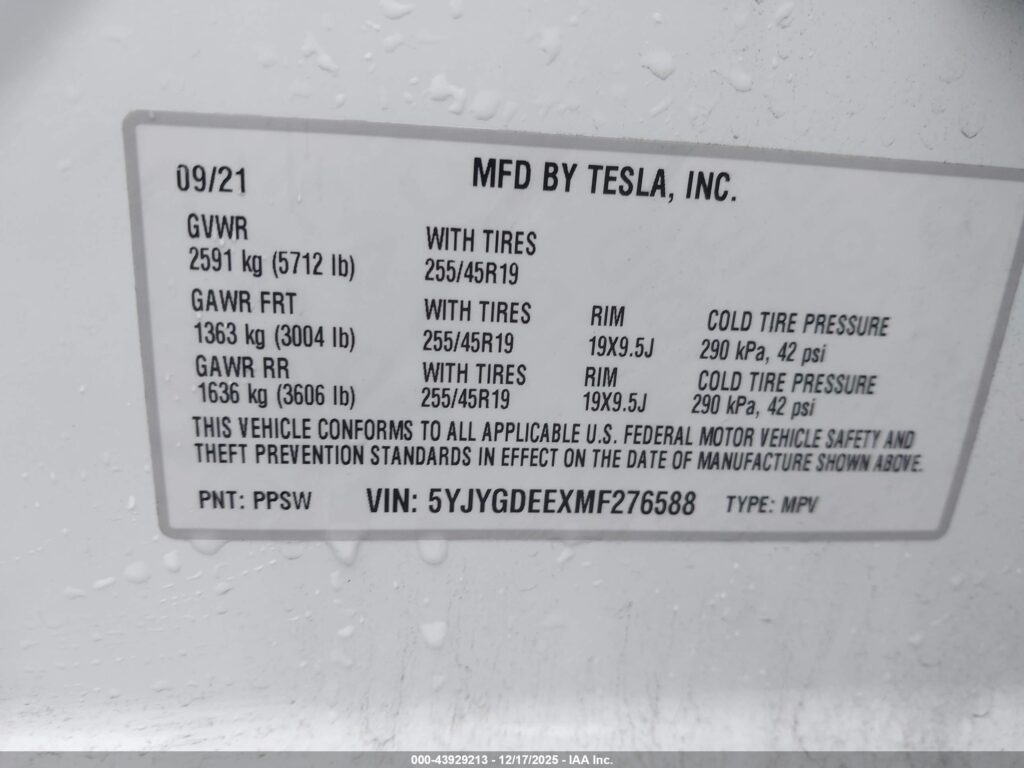 2021 Tesla Model Y – 5YJYGDEEXMF276588