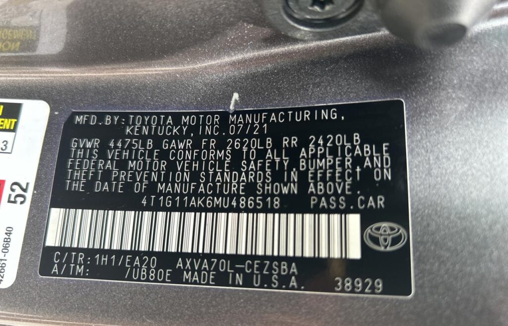 2021 Toyota Camry – 4T1G11AK6MU486518