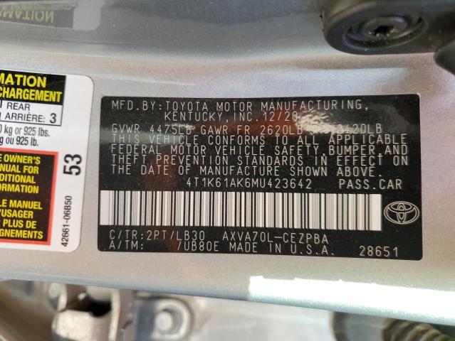 2021 TOYOTA CAMRY – 4T1K61AK6MU423642