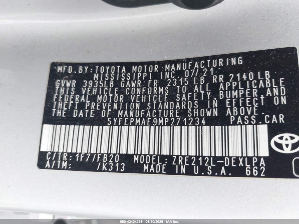 2021 Toyota Corolla – 5YFEPMAE9MP271234