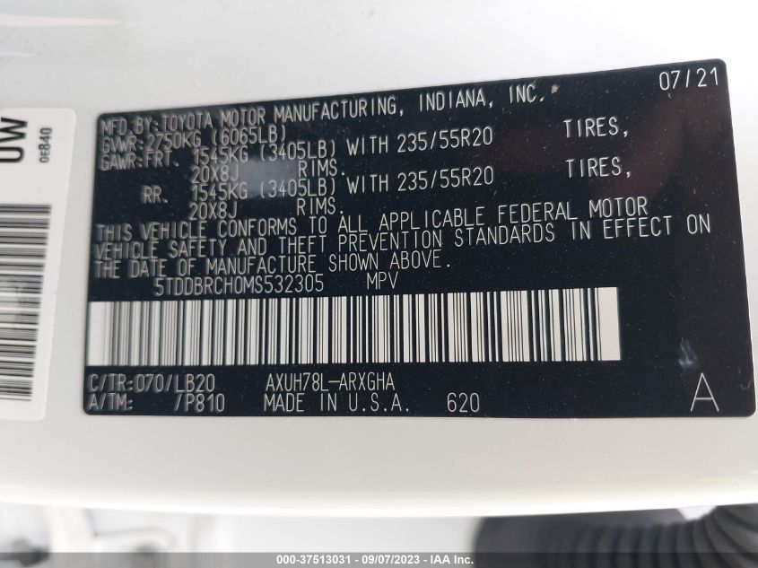 2021 TOYOTA HIGHLANDER – 5TDDBRCH0MS532305