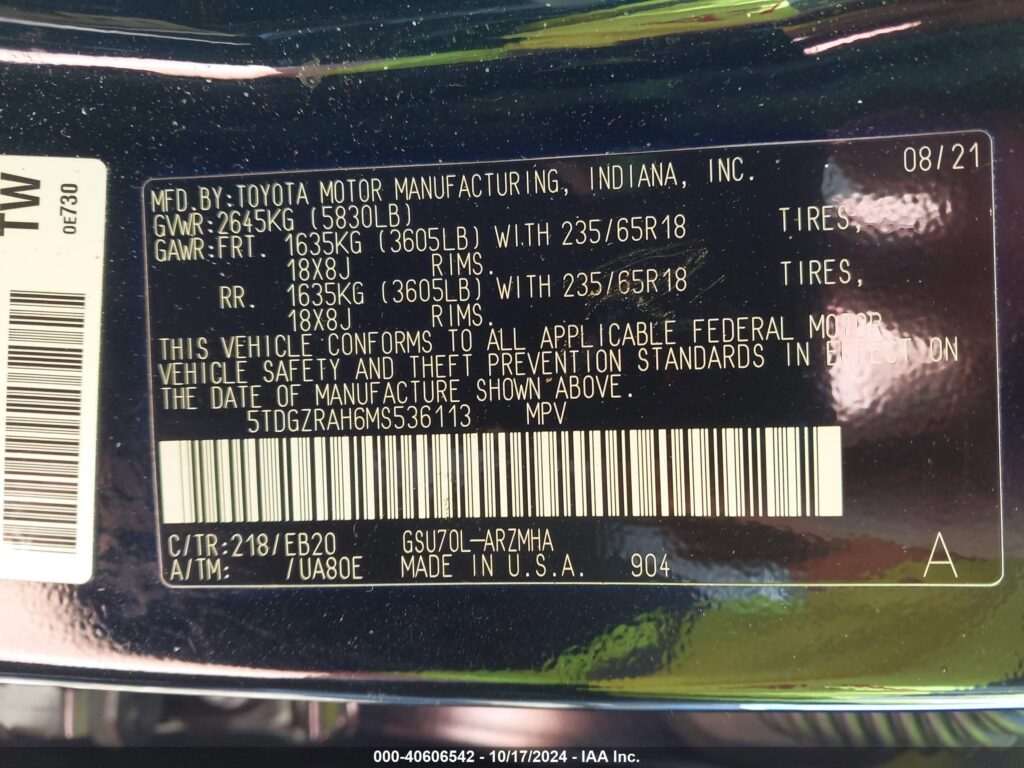 This 2021 Toyota Highlander (Black) comes from a major insurance auction in the USA or Canada. All information on this page is linked to the vehicle’s VIN (5TDGZRAH6MS536113), which helps confirm where the car was listed and what condition it was in at the time of sale.