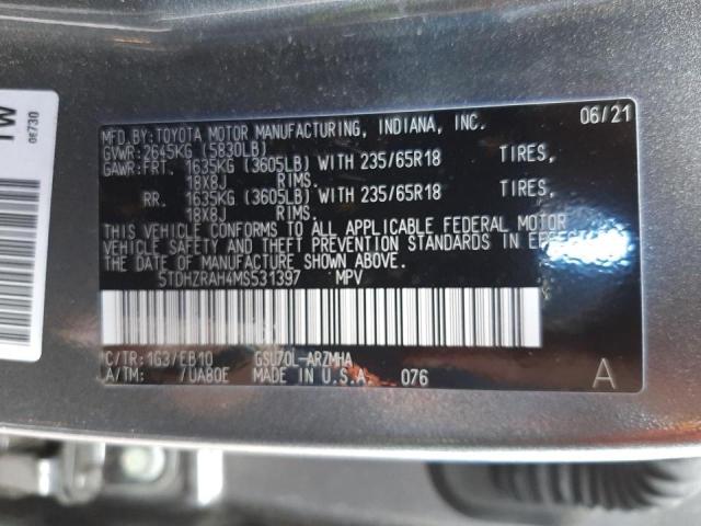 | VIN Number | 5TDHZRAH4MS531397 |