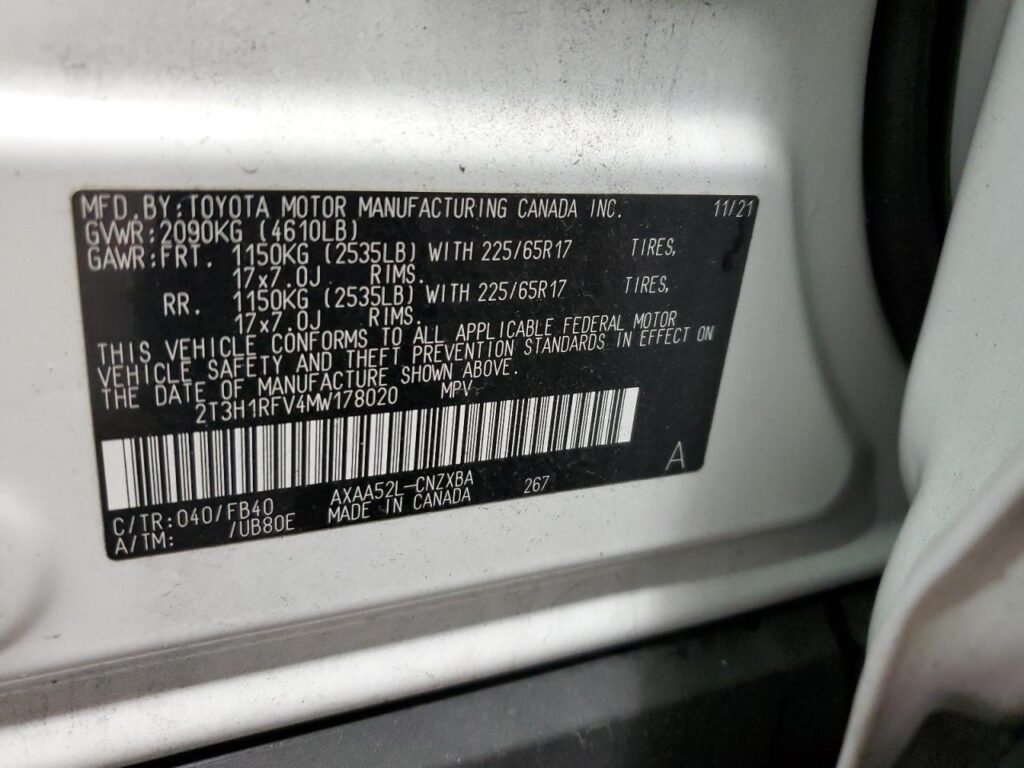 | VIN Number | 2T3H1RFV4MW178020 |