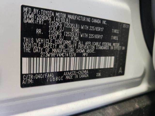 This 2021 Toyota RAV4 (White) comes from a major insurance auction in the USA or Canada. All information on this page is linked to the vehicle’s VIN (2T3W1RFV4MC141378), which helps confirm where the car was listed and what condition it was in at the time of sale.