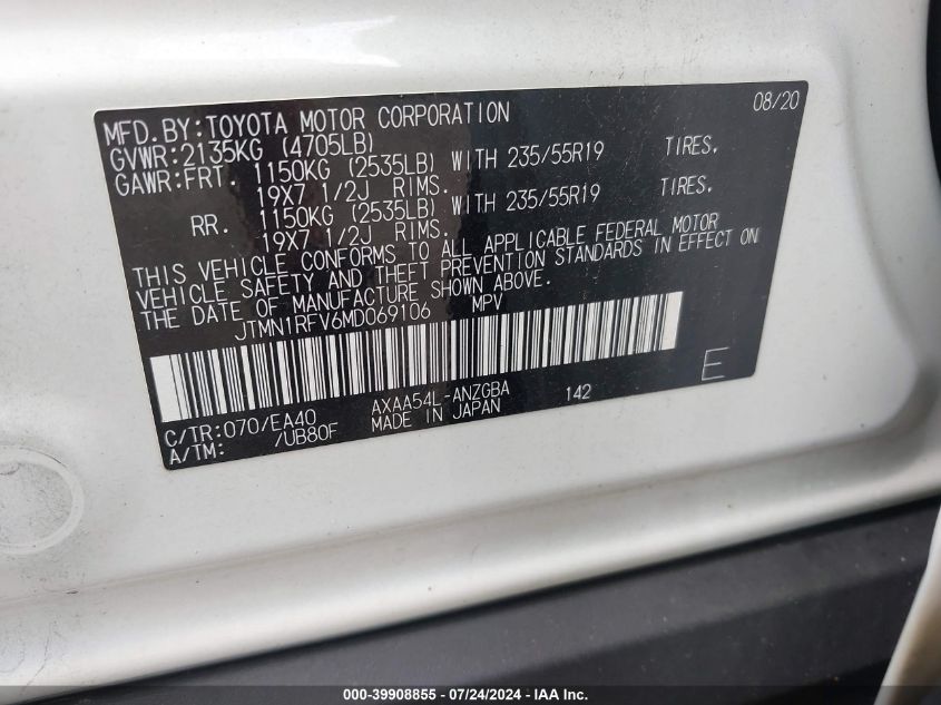 2021 TOYOTA RAV4 – JTMN1RFV6MD069106