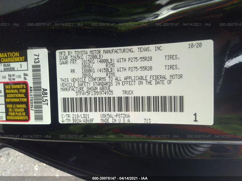 2021 Toyota Tundra – 5TFAY5F13MX974935