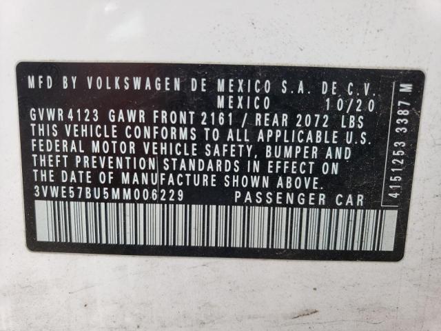 This 2021 VOLKSWAGEN JETTA (WHITE) comes from a major insurance auction in the USA or Canada. All information on this page is linked to the vehicle’s VIN (3VWE57BU5MM006229), which helps confirm where the car was listed and what condition it was in at the time of sale.