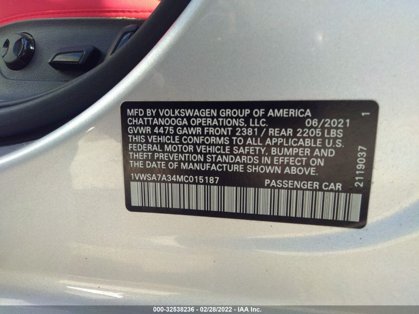 2021 Volkswagen Passat – 1VWSA7A34MC015187