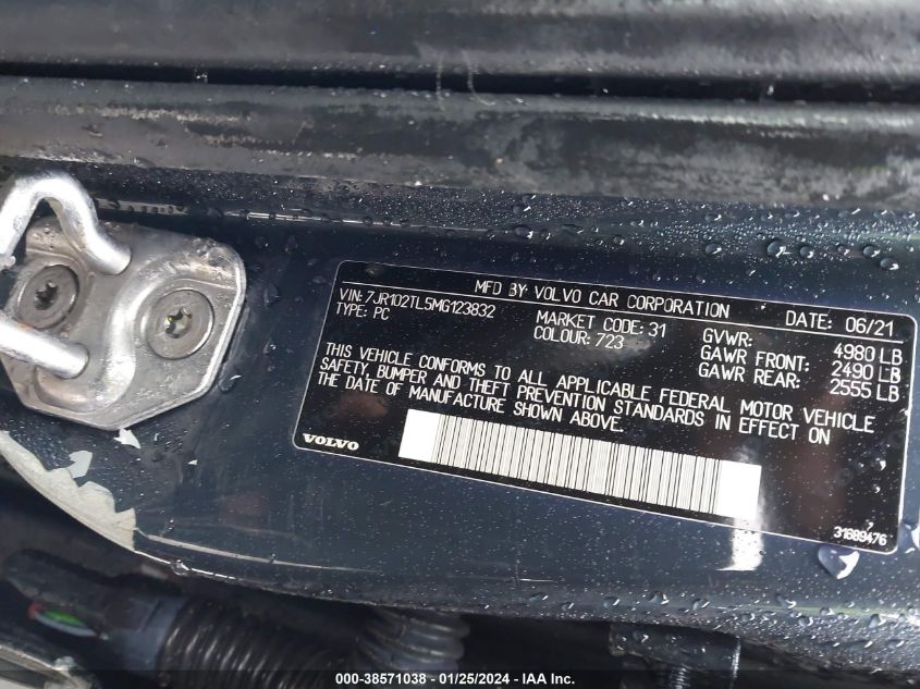 2021 Volvo S60 – 7JR102TL5MG123832