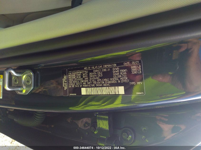 This 2021 Volvo XC90 (Blue) comes from a major insurance auction in the USA or Canada. All information on this page is linked to the vehicle’s VIN (YV4A22PK8M1771143), which helps confirm where the car was listed and what condition it was in at the time of sale.