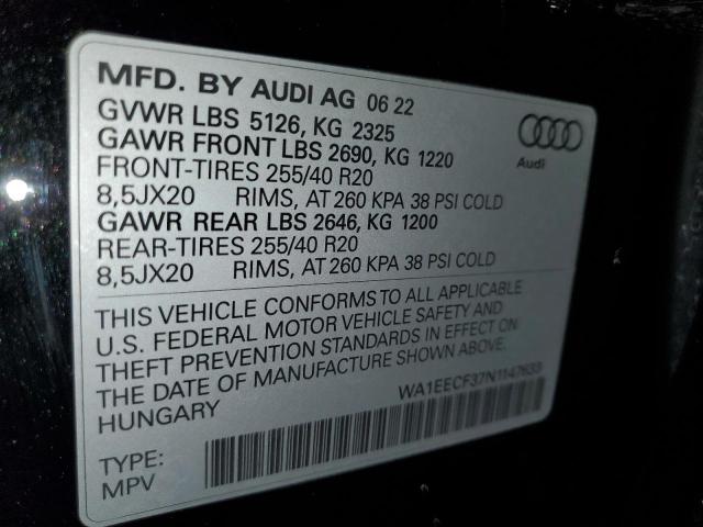 This 2022 AUDI Q3 (BLACK) comes from a major insurance auction in the USA or Canada. All information on this page is linked to the vehicle’s VIN (WA1EECF37N1147633), which helps confirm where the car was listed and what condition it was in at the time of sale.