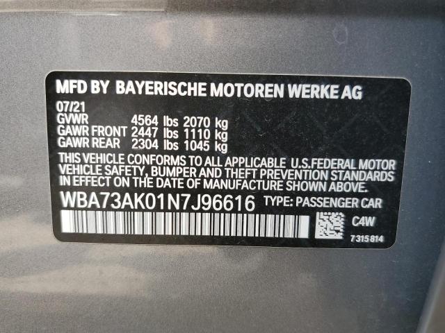 This 2022 BMW 2 Series (Grey) comes from a major insurance auction in the USA or Canada. All information on this page is linked to the vehicle’s VIN (WBA73AK01N7J96616), which helps confirm where the car was listed and what condition it was in at the time of sale.
