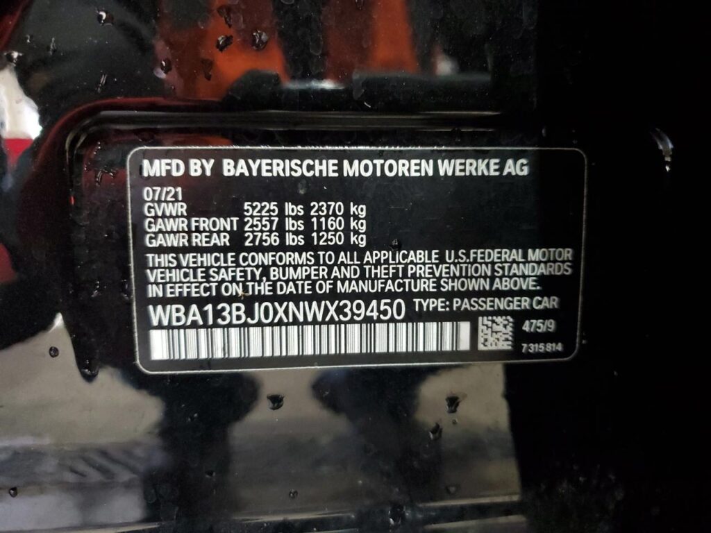 This 2022 BMW 530 xi (BLACK) comes from a major insurance auction in the USA or Canada. All information on this page is linked to the vehicle’s VIN (WBA13BJ0XNWX39450), which helps confirm where the car was listed and what condition it was in at the time of sale.