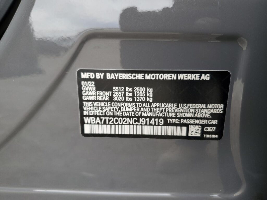 This 2022 BMW 7 Series (Grey) comes from a major insurance auction in the USA or Canada. All information on this page is linked to the vehicle’s VIN (WBA7T2C02NCJ91419), which helps confirm where the car was listed and what condition it was in at the time of sale.