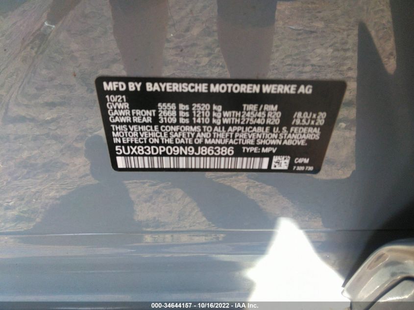 VIN: 5UX83DP09N9J86386