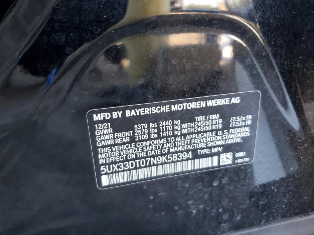 This 2022 BMW X4 (BLACK) comes from a major insurance auction in the USA or Canada. All information on this page is linked to the vehicle’s VIN (5UX33DT07N9K58394), which helps confirm where the car was listed and what condition it was in at the time of sale.