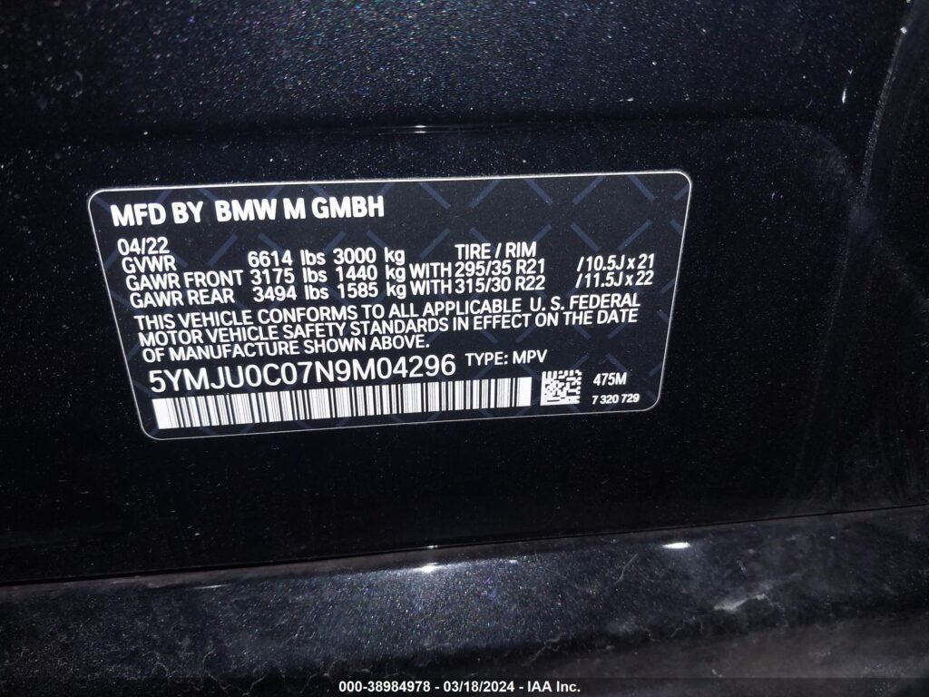 | VIN Number | 5YMJU0C07N9M04296 |