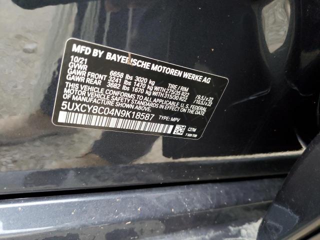This 2022 BMW X6 (Charcoal) comes from a major insurance auction in the USA or Canada. All information on this page is linked to the vehicle’s VIN (5UXCY8C04N9K18587), which helps confirm where the car was listed and what condition it was in at the time of sale.