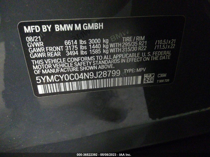 | VIN Number | 5YMCY0C04N9J28799 |