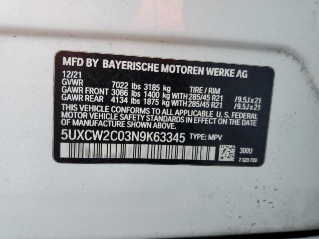This 2022 BMW X7 (White) comes from a major insurance auction in the USA or Canada. All information on this page is linked to the vehicle’s VIN (5UXCW2C03N9K63345), which helps confirm where the car was listed and what condition it was in at the time of sale.