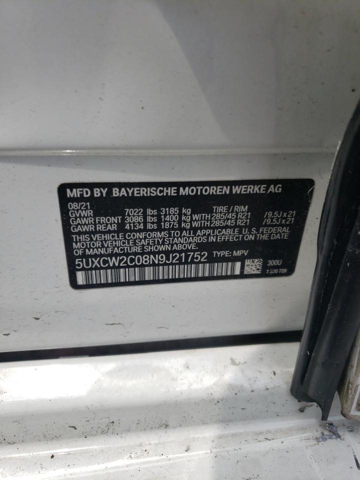 This 2022 BMW X7 (White) comes from a major insurance auction in the USA or Canada. All information on this page is linked to the vehicle’s VIN (5UXCW2C08N9J21752), which helps confirm where the car was listed and what condition it was in at the time of sale.