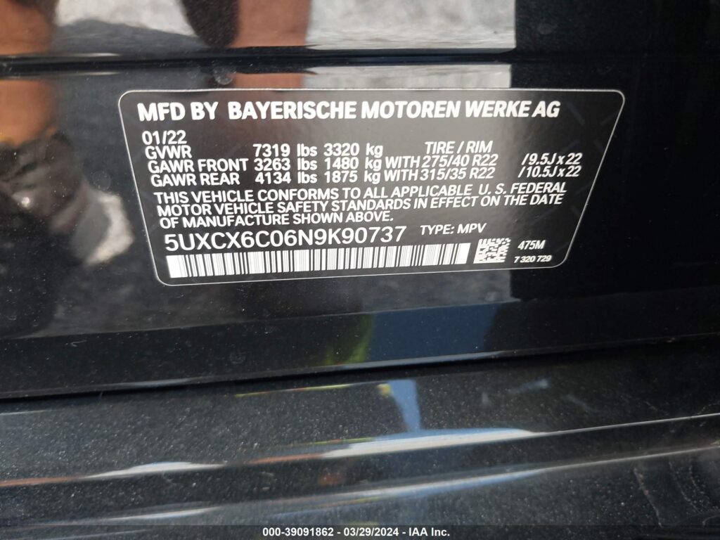 This 2022 BMW X7 (Black) comes from a major insurance auction in the USA or Canada. All information on this page is linked to the vehicle’s VIN (5UXCX6C06N9K90737), which helps confirm where the car was listed and what condition it was in at the time of sale.
