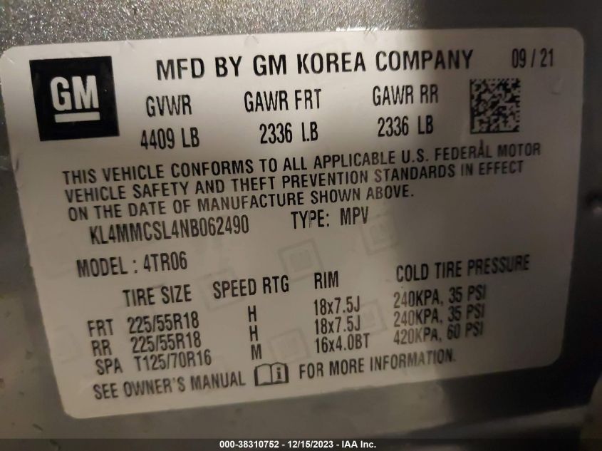 | VIN Number | KL4MMCSL4NB062490 |